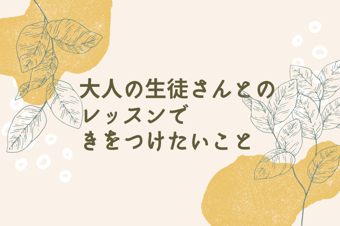 ただ、子供さんへのレッスンとはまたちがう気配りをしないといけないのが大人のレッスンです。ここでは、大人のレッスンについての注意点をあげます。