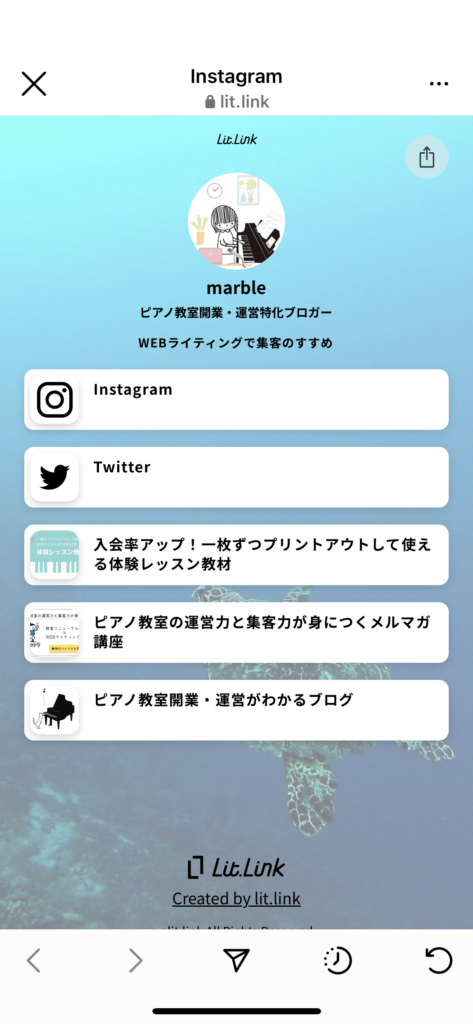 ちなみに私のLit.Linkのページはこんな感じです。